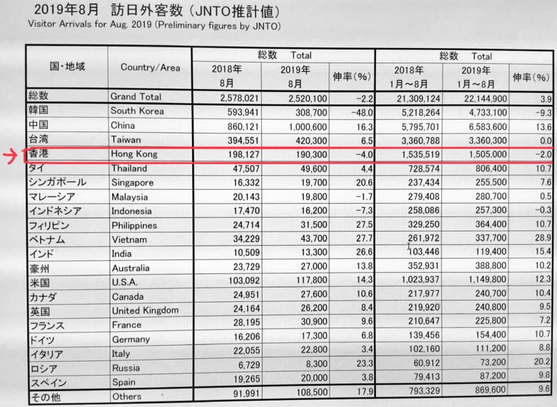 中国・台湾・韓国 に次ぐ 4番目の訪日客数が香港だ❗️
