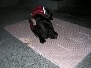 帰宅後のヴォンは、牛爪をくわえてウロウロしています。