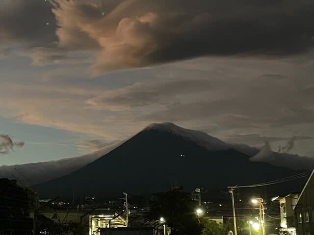 台風7号が近づいている日の富士山は、後ろの雲に影が映っていました。