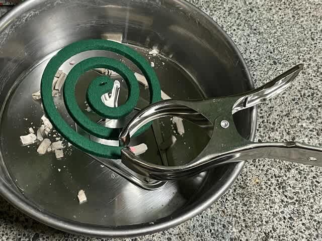 蚊取り線香を途中で消したい時は、ステンレスピンチで挟むと良いですよ。