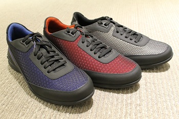 最初、気になったのはスポーティーなシューズだった。履いてみると足にフィットするし、軽い。靴底がまるまるタイヤを切った部分が使われている。シャープなカットのシルエットがかっこいいし、丈夫なタイヤのゴムが足に与える衝撃を少なくしている感じがして、とても履き心地がいい。色も三色あって、とっても良い感じだった。