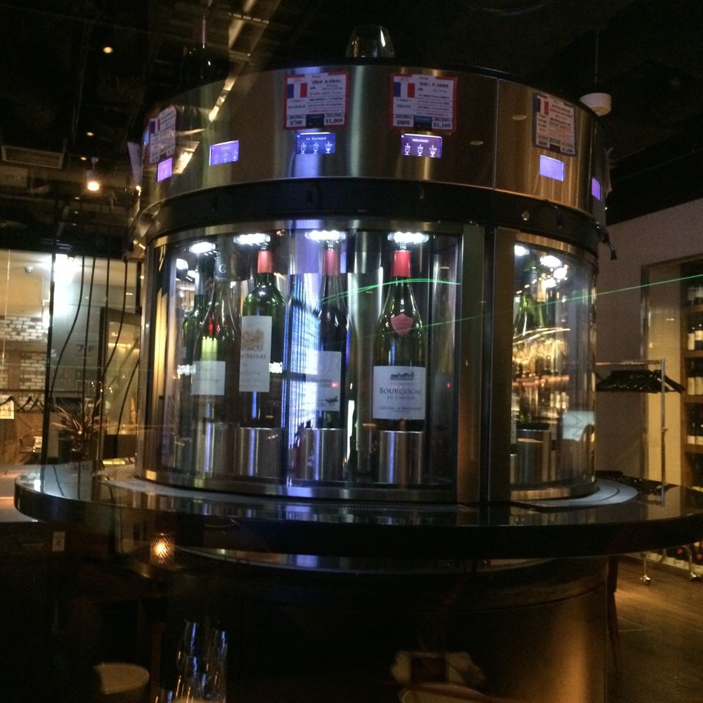 店に入ってすぐ出迎えてくれるのは、プリペイドカードを買って、好きなワインを自分で注ぐマシン。面白いねえ。