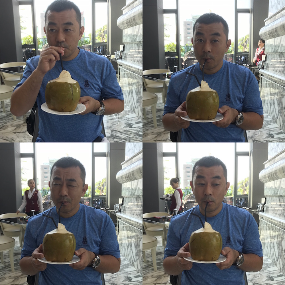 朝食は、ビュッフェだけど食べ過ぎないことが重要。椰子の実まるまるのココナッツ・ジュースが置いてあった。もっと甘ったるいかと思っていたけど、ココナッツの白い部分は砕かれてないので、透明な果汁のみですっきり爽やかな味。美味しい!