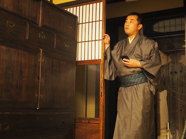 あまりに昭和レトロな風情だったので、着物を着て自撮り大会をした。iPhoneをリモコンにしてカメラのシャッターを切ったので、手にiPhoneを持ってたりするけどね。(笑)