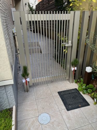 小さな門の両端にワイヤーを使って、ちょこんと付けてみた。