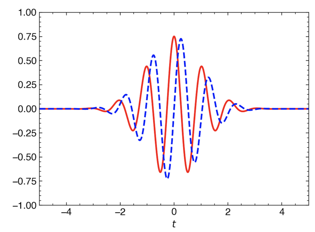 \psi_\mathrm{M}(t) = \pi^{-1/4}e^{i\omega_0t}e^{-t^2/2}