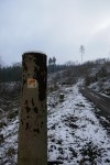 Am Ortsausgang sind die Straßenränder mit Flatterband abgesperrt – sollten sich auch hier die Tagestouristen gedrängt haben? Eigentlich sieht es nicht danach aus, struppiger Wald, matschige Fußwege, verhangene Ausblicke. Aber wer weiß. Wir begegnen jedenfalls keiner Seele bis ziemlich spät am Tag. (Dann lassen sich zwei junge Frauen – mit Abstand – von uns den Weg zeigen. „Eine schöne Karte haben Sie da“, als hätten sie so was noch nie gesehen.)
