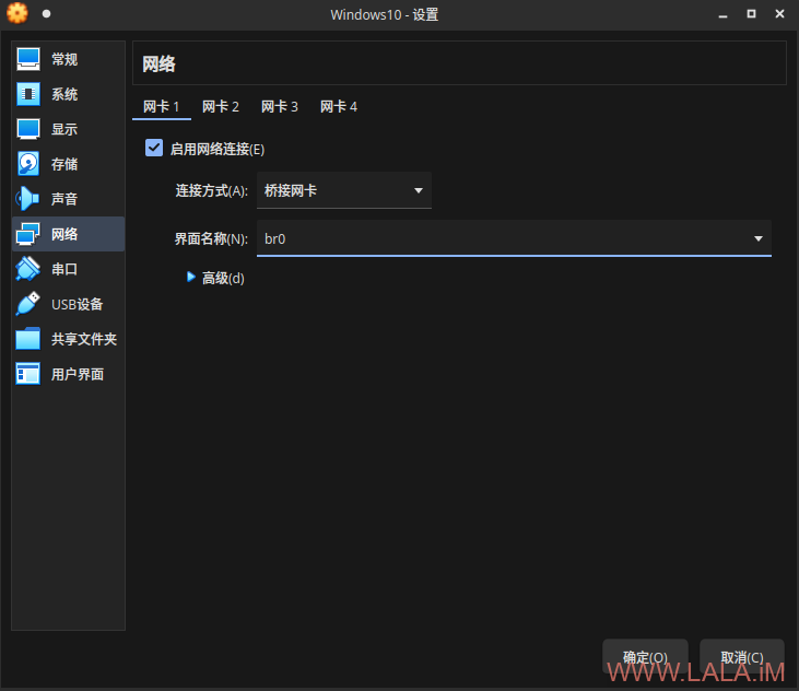 之前创建的br0网桥,如果你还安装了virtualbox虚拟机,也可以让virtualbox使用到它: