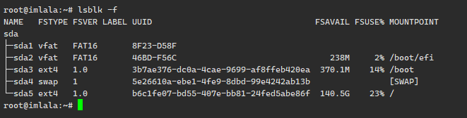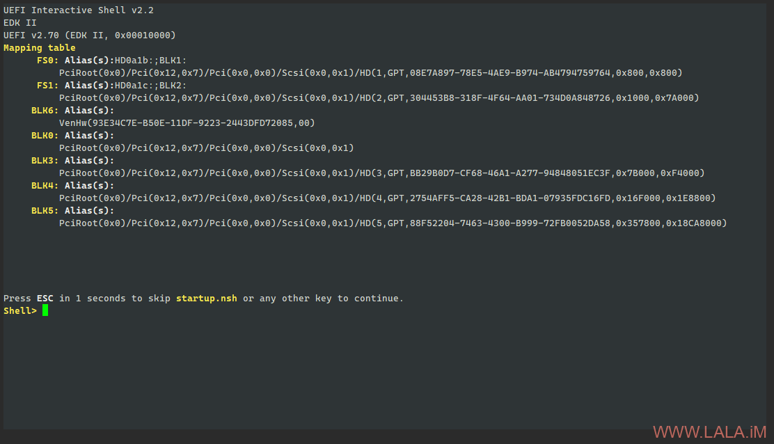 这个时候如果机器重启的话还是会回到UEFI Shell,现在需要重新安装GRUB。看一下EFI分区的挂载点: