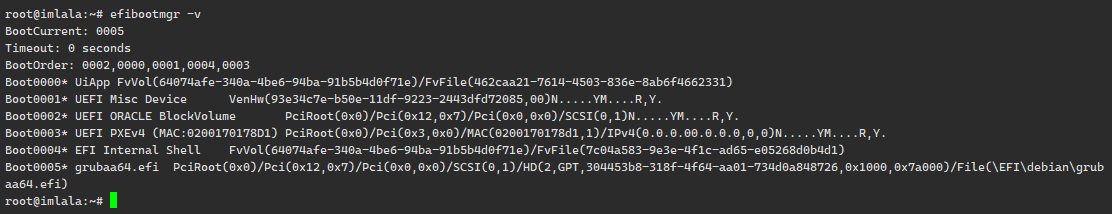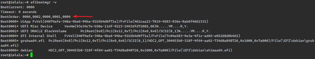 机子引导成功了,连上了用efibootmgr看一下,发现启动顺序不对,启动项也没:
