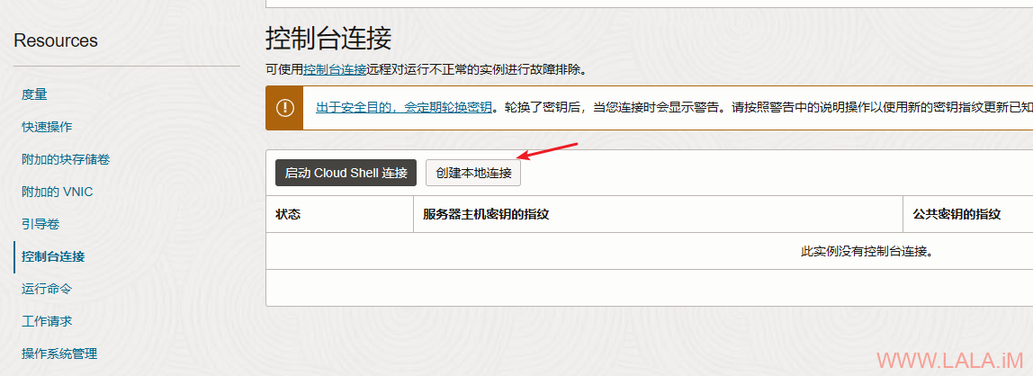 2、在龟壳后台创建控制台连接,选择创建本地连接: