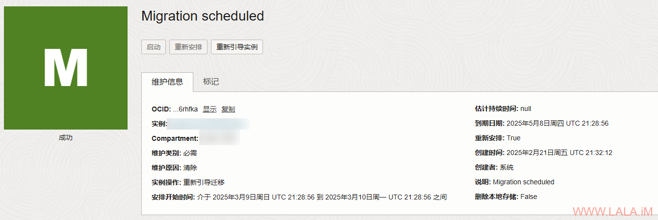 我也不知道这是什么东西,好像是计划维护(迁移)?但是我没有收到任何维护的邮件通知,我也不知道这个维护是具体维护了什么,反正它显示已经完成了。。但是我的机子确实连不上了,所以这是维护了什么。。修复了机子运行过于稳定的BUG?真的就是一脸懵逼的状态。。。仔细一想我猜测可能和我私自把系统重装成Debian有关?但具体的情况我不得而知。