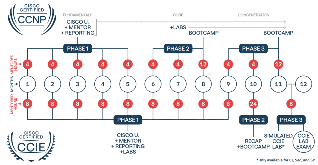 Project 525 is a mentorship program created in partnership with Cisco and delivered by Cisco Certified Global Training Partners. It is designed for driven IT professionals aiming to achieve the CCNP, CCIE, or CCDE certification, offering a clear learning path, continuous guidance, and the accountability needed to stay focused and exam-ready.