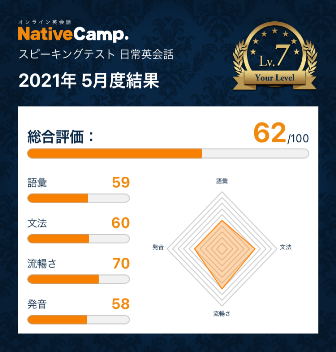 Native Camp スピーキングテスト2021年7月の結果