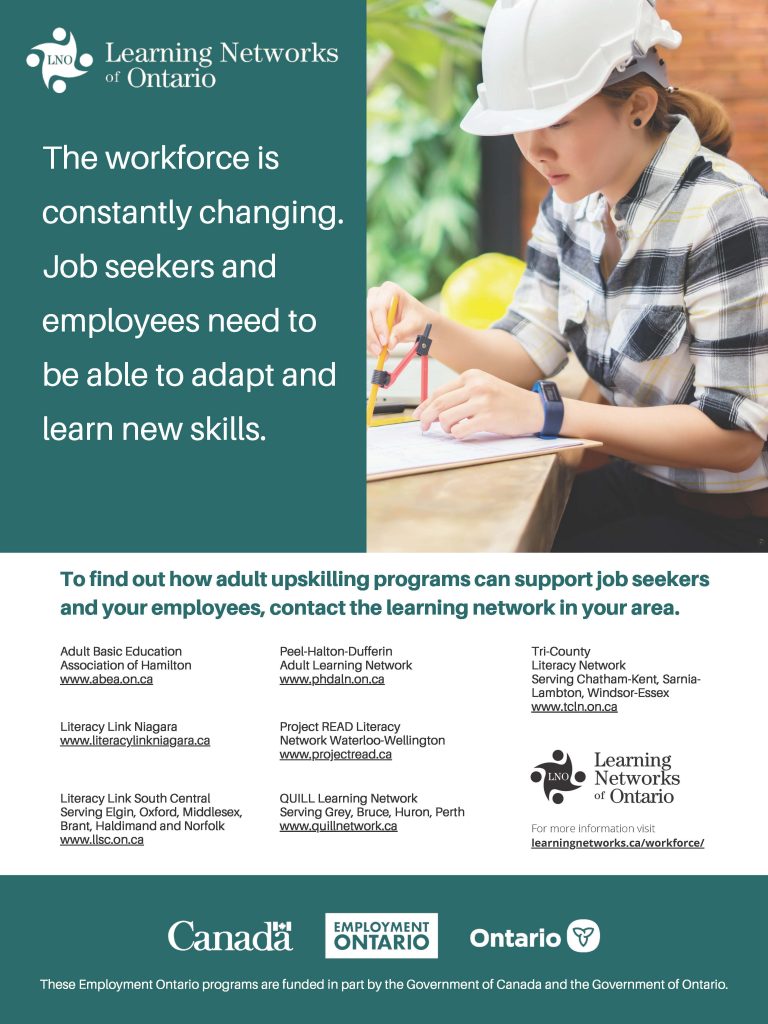 If you have questions about adult upgrading programs or are wondering how your local upgrading programs may be able to assist you with a workforce skills issue, please don’t hesitate to reach out. Click here to find your local learning network. If you need assistance, please email director@abea.on.ca (Sara Gill, website administrator).