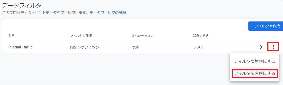 進むとこんな画面が表示されますので「︙」から「フィルタを有効にする」を選んでください。
