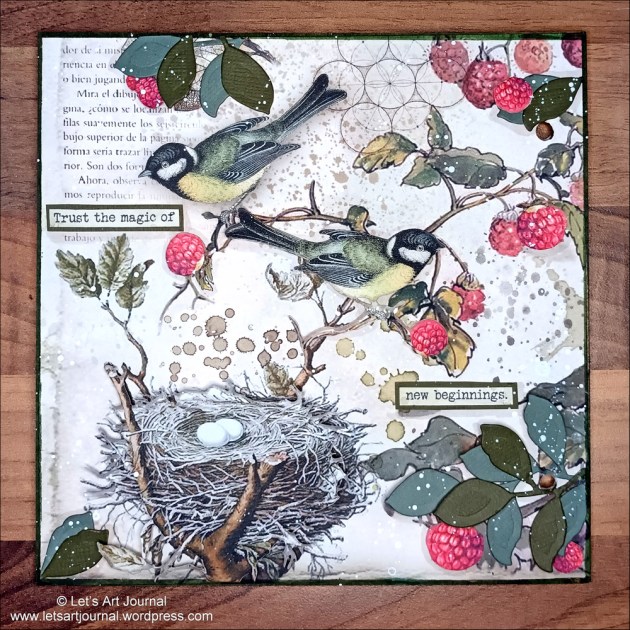 The lovely Erika from her blog BioArtGal is hosting over at Art Journal Journey this month; she has chosen What’s Up? as her theme and I’m joining in the fun with a bit of winter magic.