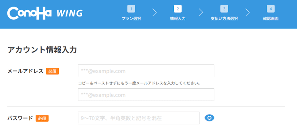 ここで入力した内容で、ConoHaアカウントが作成されます。