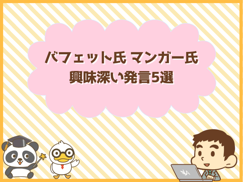 今回の記事では、バフェット氏・マンガー氏の興味深い発言5選を紹介しつつ、彼らの発言を踏まえた皆さんへのアドバイスもお伝えします。