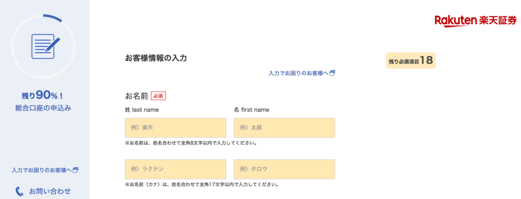 楽天証券で口座開設する際は、
