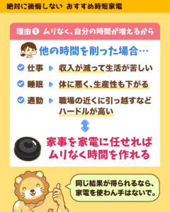 1つ目は「自分の時間を増やしてくれるから」であり、時短家電の導入をおすすめする一番大きな理由です。
