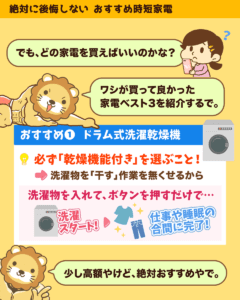 解説動画:【家電はケチるな】絶対に後悔しないおすすめ時短家電ベスト3(アニメ動画)