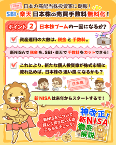 ちなみにSBI証券と楽天証券は、新NISAにおける米国株・海外ETF購入の手数料も無料になる予定です。
