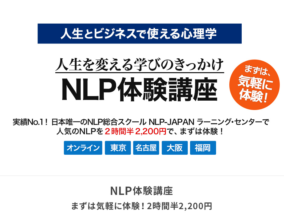 心理学NLPをベースに、コミュニケーション、コーチング、セラピー、人に影響を与える言語パターンや、深層心理へのアプローチ、自己探求などの学びをご提供しています。