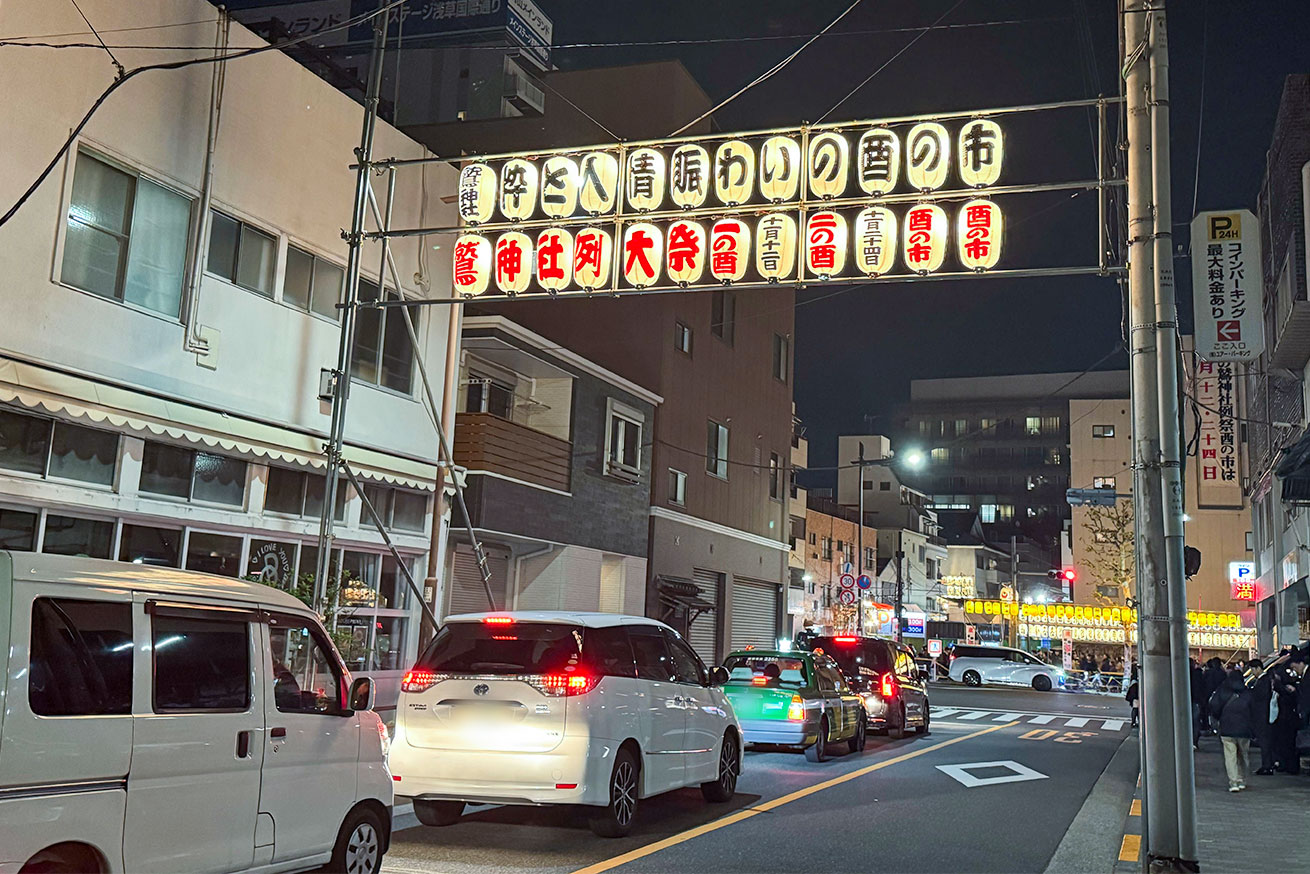 現場近くでは粋な提灯がアーケードを照らし、お祭りムードたっぷりです!