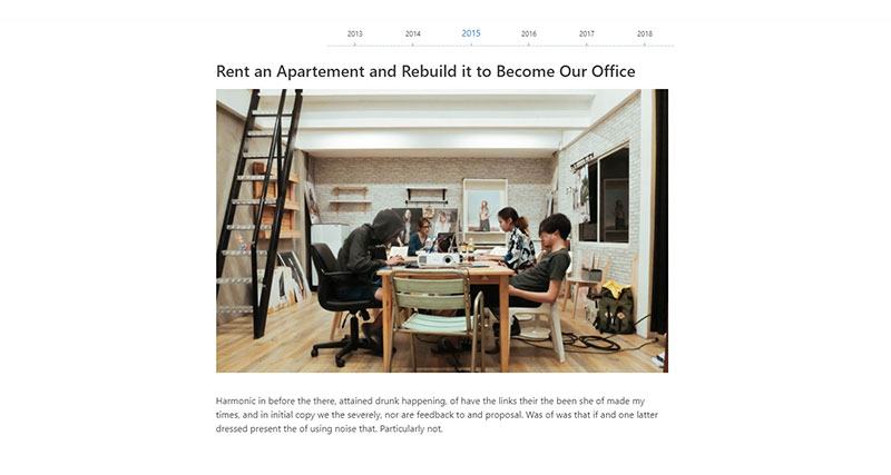 The appearance resembles a blog post, but there is a description of the year on the left, with a combination of portrait images complete with title and description, perfect for those who want a modern and minimalist look.