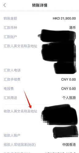 需要注意的事,收款人英文地址那里,填的是香港地址,一般人没有香港地址,直接去谷歌地图上随便找个香港地址,我是在找了个香港餐饮店的地址,也可以。