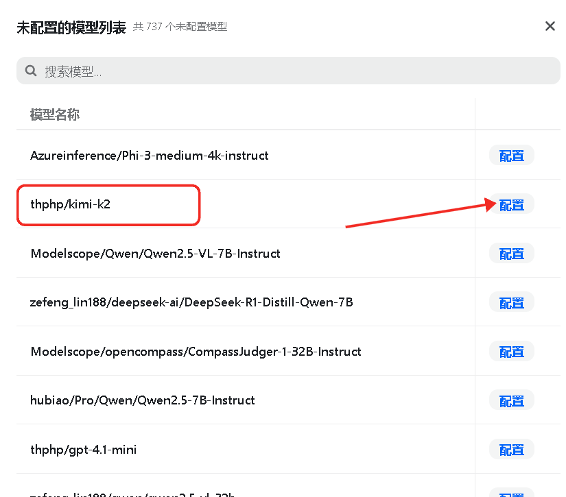 然后点击 未配置模型 ,找到刚刚添加的任意一个模型,点击配置