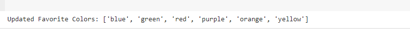 Suppose we have a list of favorite colors and we want to update it by adding more colors using the “+=” operator.