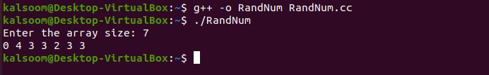 In the block of for loop, we have the rand() method which will produce a random number in each loop cycle. The cout command will print the random number of the given array size.