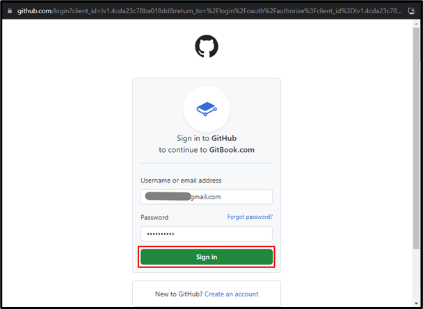 Next, sign in to the GitBook account with the preferred account. For instance, we are continuing with our GitHub account: