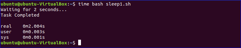 In the following script, sleep command is used with numeric value 2 only and no suffix is used. So, if you run the script then the string “Task completed” will print after waiting for 2 seconds.