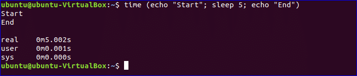 sleep command is used between two echo commands in the following example. Three time values will be displayed after executing the command.