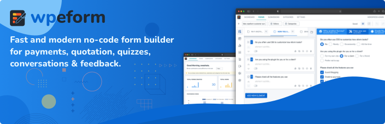 WPEForm is a Live, No-Code, Drag-N-Drop Form Builder for quizzes, payment estimations, personality tests, surveys, contacts, lead generations and user feedback of all kinds.