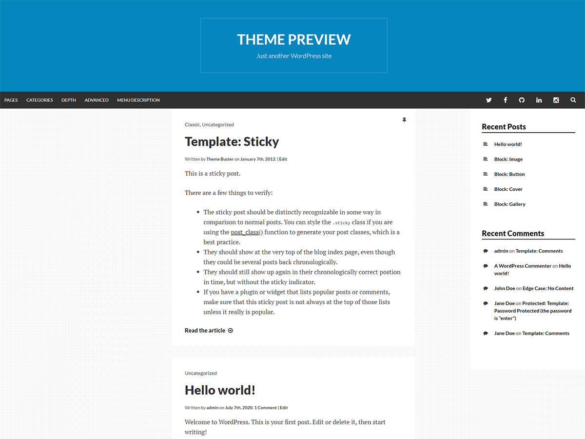 Simone is a responsive accessible theme featuring custom header and custom link colors, large images, and easy to read typography that scales to fit all screens. Other features include keyboard accessible navigation, optional social menu, sidebar- and footer widgets, no-sidebar page template, Aside post format, and collapsible author profile box. Simone is translation ready and ships in English with translations in Catalan, Chinese (simplified), Dutch, Finnish, French, German, Hungarian, Italian, Norwegian Bokmål, Persian, Russian, Spanish, Swedish, and Turkish.