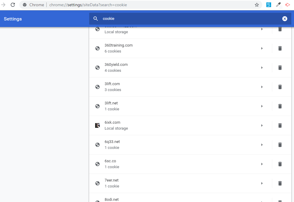 If you wish to remove all the cookies and cache then navigate to History tab in Chrome and clear data.