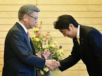 頭を深く下げて握手をする首相を上から見下ろす知事の態度は好きになれないなぁ~