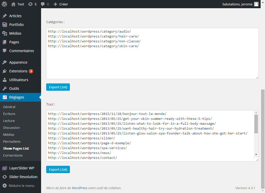 Developed by www.lije-creative.com, this is a simple plugin that gives you the urls of your pages, posts and everything else. It is useful to generate a network chart.