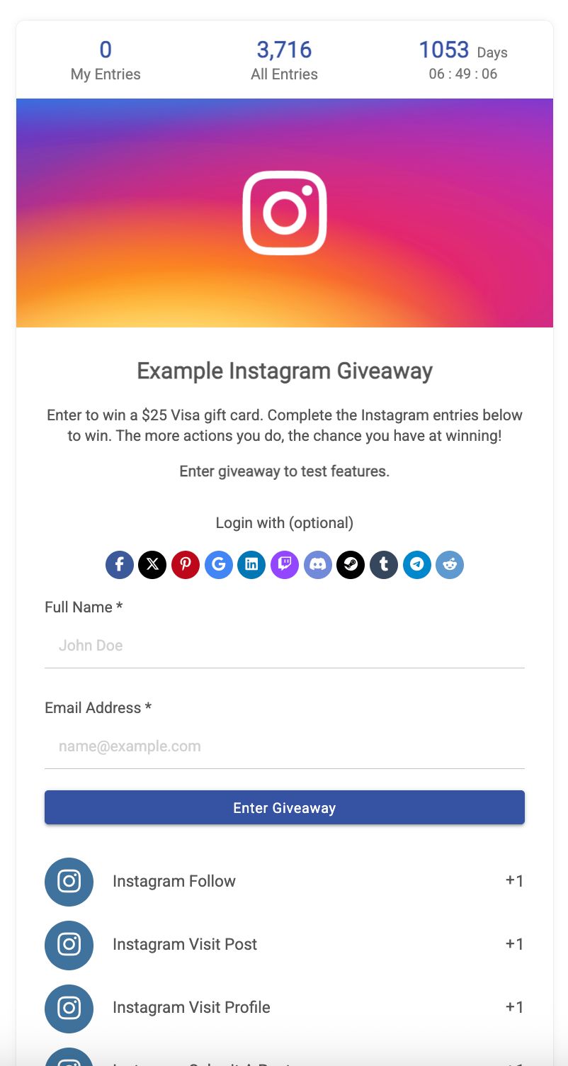 - 130+ entry methods – More than any other WordPress giveaway plugin (most offer 20-30). More options means more engagement and more growth for your brand.