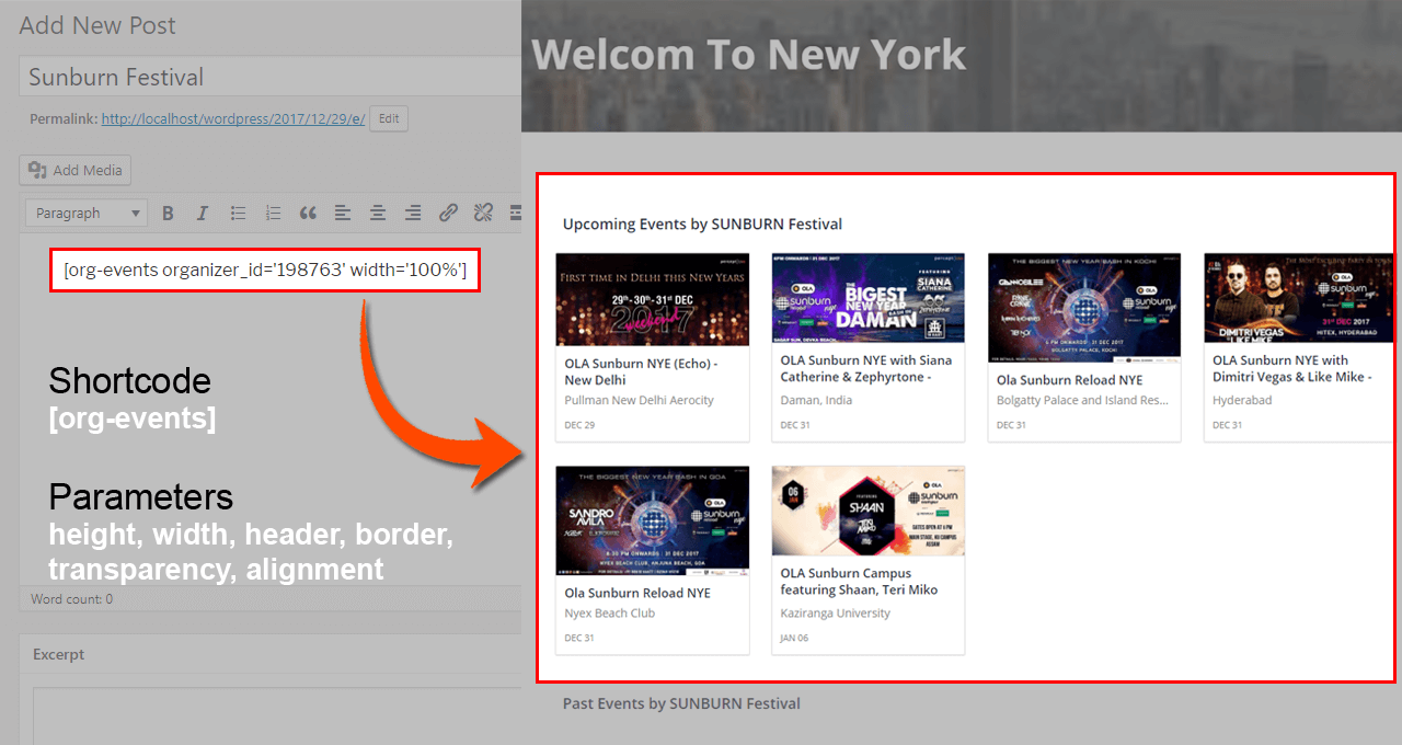 Now onwords you can embed your events onto your website using simple shortcode.