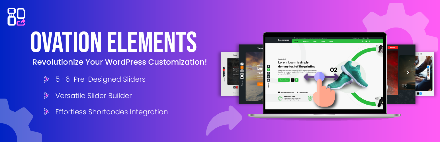 The Ovation Elements WordPress Plugin is your all-in-one solution for creating beautiful, professional, and highly functional sliders. Transform your website today and deliver a visually engaging experience that captivates your visitors and enhances your brand’s online presence.