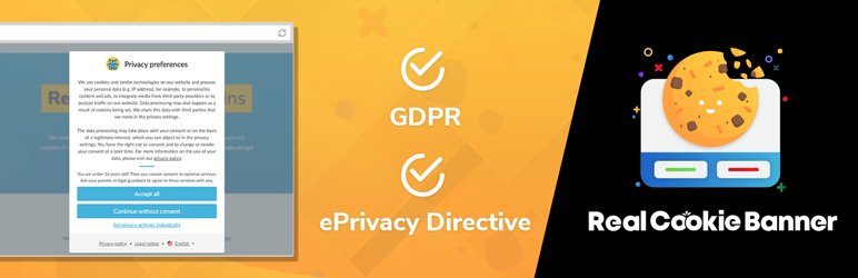 Real Cookie Banner is a cookie and consent management plugin. Obtain consent to load services and set cookies for your visitors in accordance with the GDPR and ePrivacy Directive. In addition, content blockers help you to be compliant even if your theme, plugin or content loads styles, scripts or iframes that would transfer personal data. Start now with our guided-configuration and avoid legal risks!
