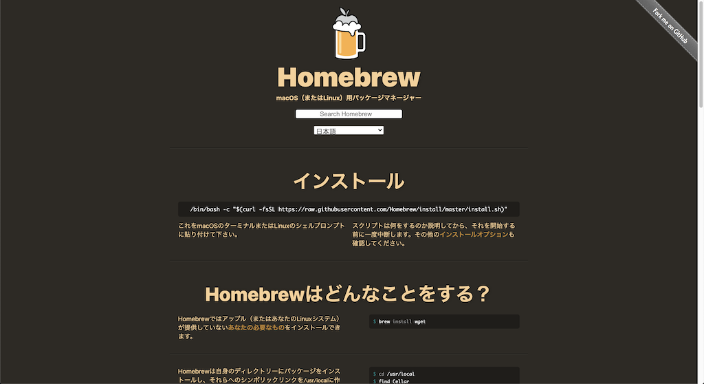 ここで早速 Homebrew を使ってインストールする。その時のコマンドは