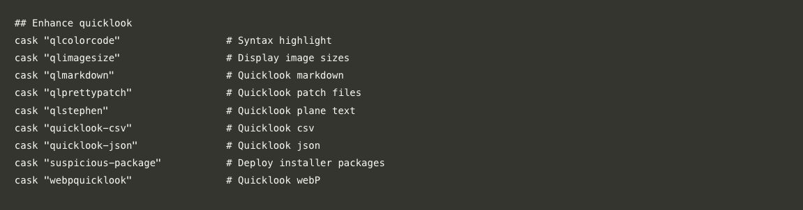 以前に書いた記事でアプリケーションやプログラムを Homebrew の Brewfile 経由で一括してインストールする手順を説明したが、実はそのときに Quick Look の機能を拡張するプログラムを複数インストールしている。