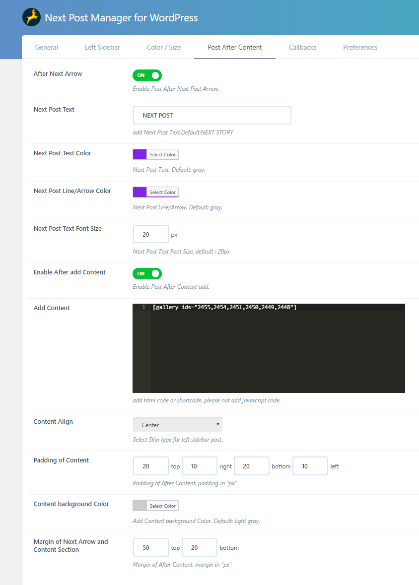 wp-next-post-managerdirectory to the/wp-content/plugins/directory - Activate the plugin in the Plugin dashboard