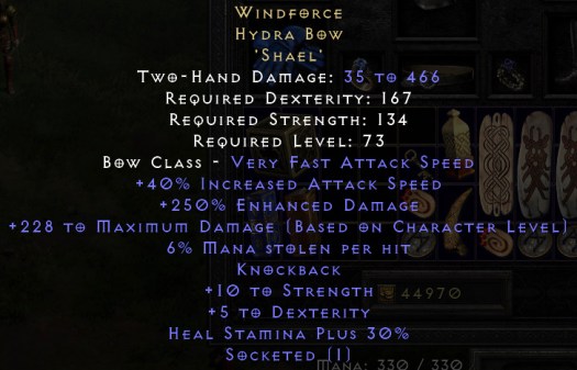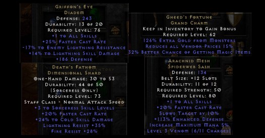Spending a grand total of ten minutes I’ve superficially skimmed some stashes and mules, and compiled an approximation of how I would want him to look like if it wasn’t gonna royally screw up his stats: